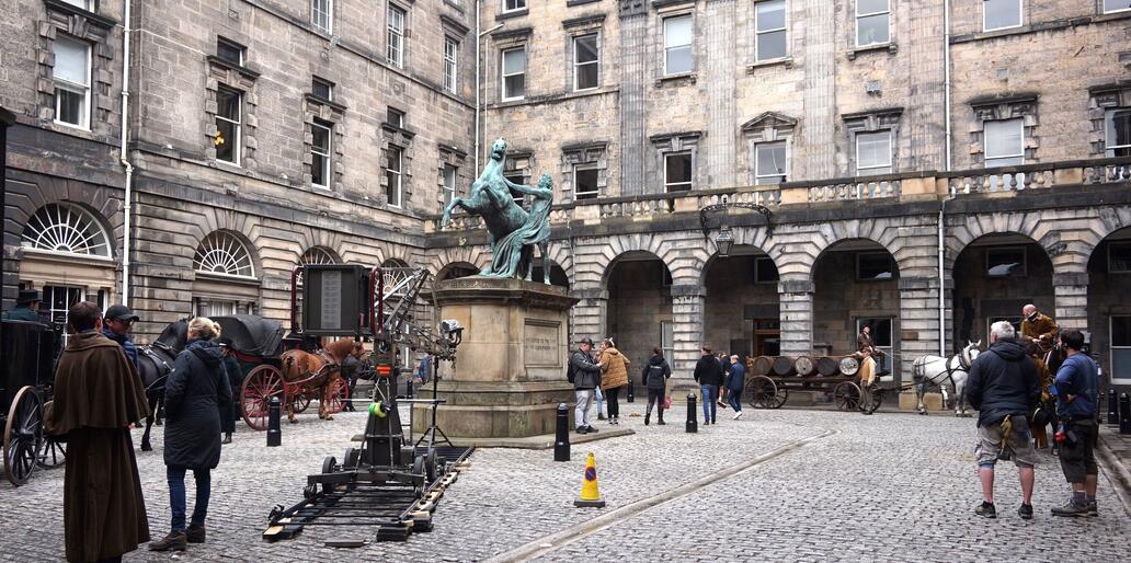Edinburgh City Chambers quadrangle, film set for Belgravia S1 (2020)