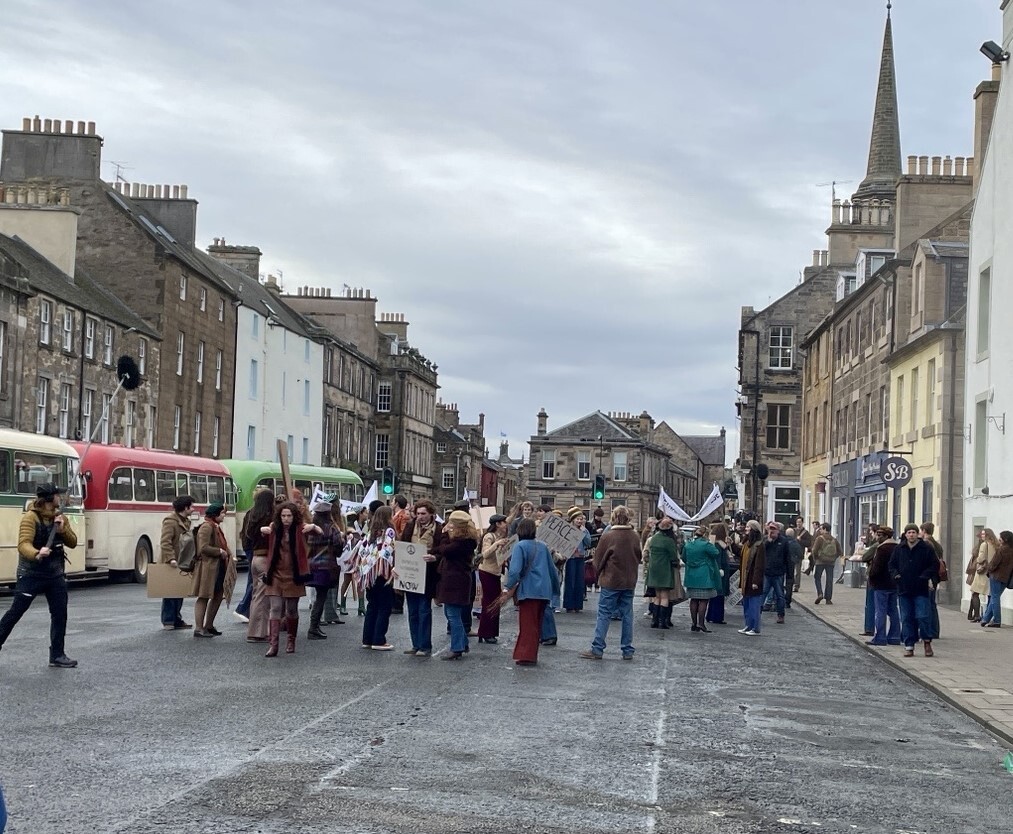 1970s set for Borges & Me, Haddington High Street. (filmed 2024)
